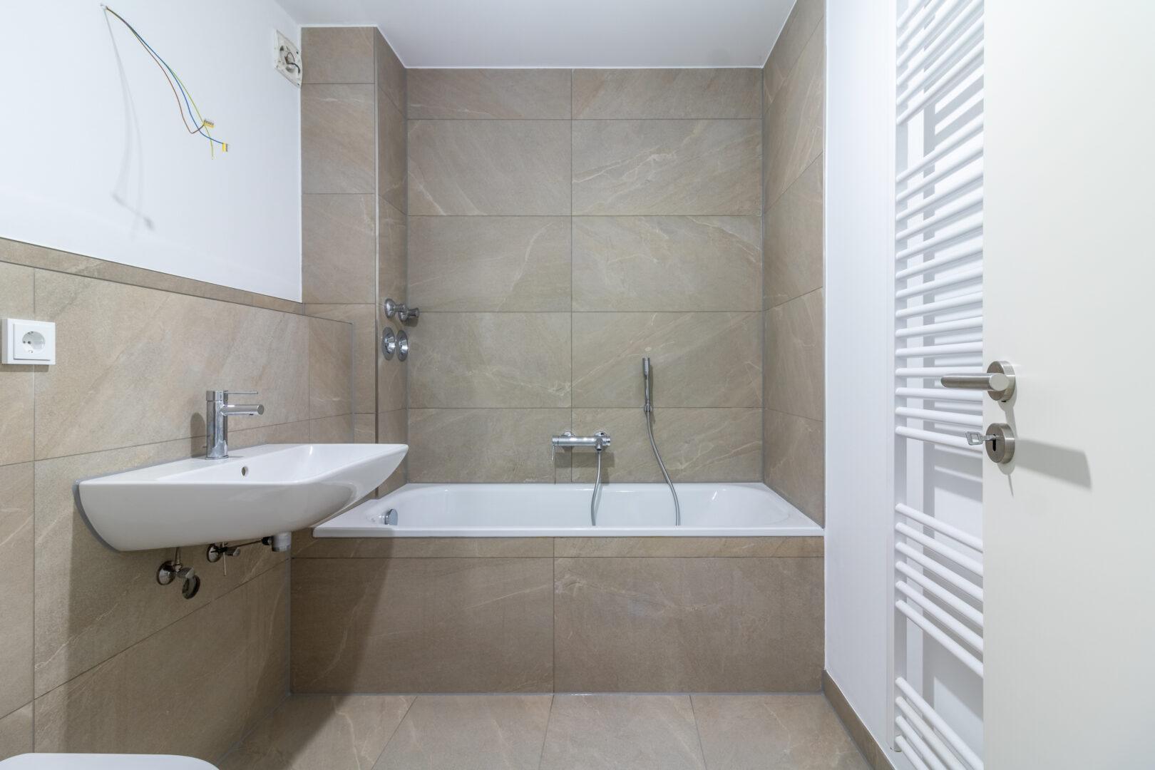 * Italienische Keramikfliesen: Geschmackvoll ausgewählte, großformatige Keramikfliesen aus Italien setzen in den Bädern stilvolle Akzente und unterstreichen das luxuriöse Ambiente.
