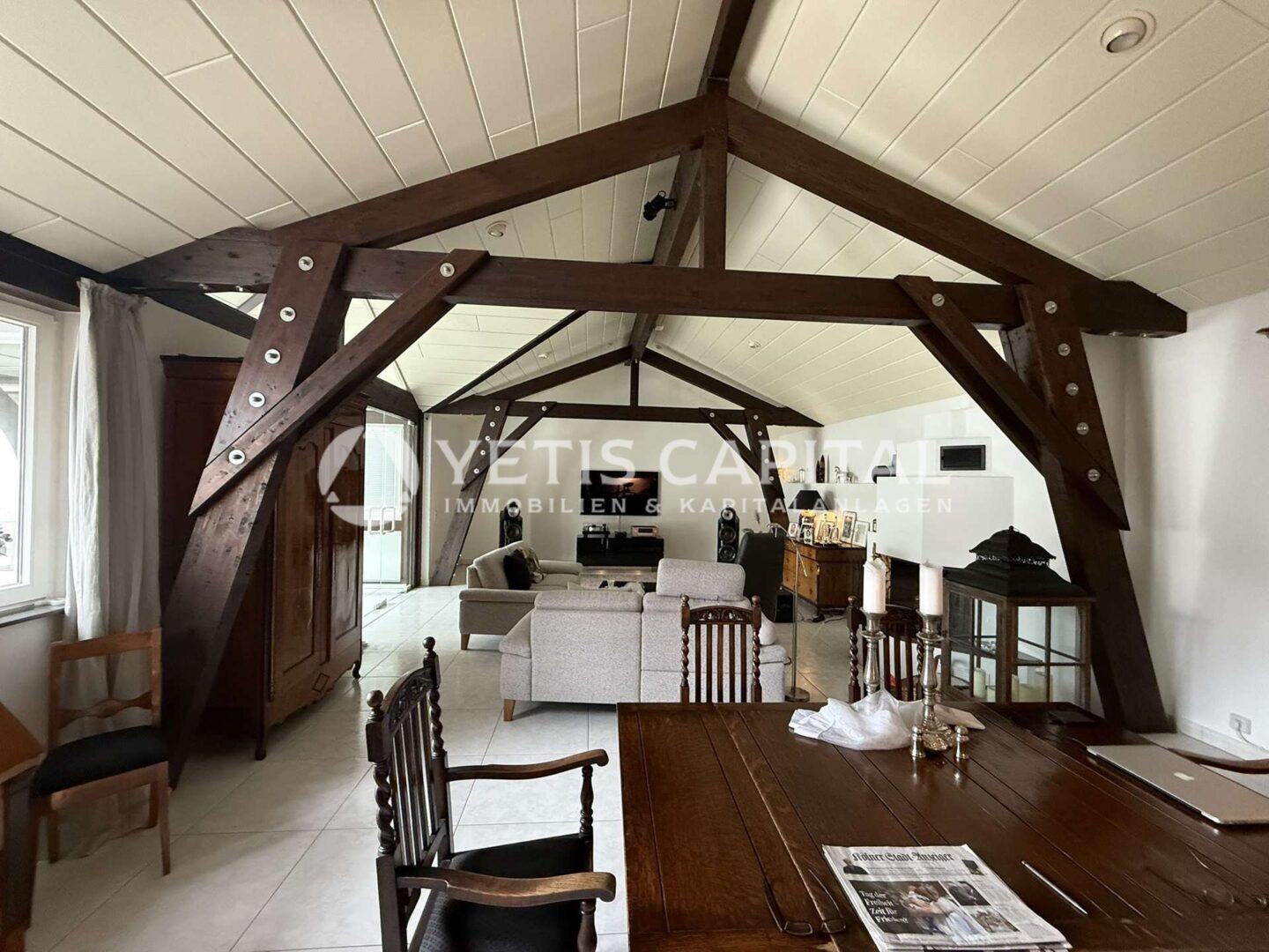 Der rückwärtige Anbau aus dem Jahr 1989 beherbergt eine großzügige Wohneinheit mit ca. 198 m², die sich in einem sehr gepflegten Zustand mit hochwertiger Ausstattung präsentiert. Die offene Raumgestaltung, Fußbodenheizung, Kamin sowie der direkte Zugang zum Garten schaffen eine Wohnqualität, die sich unmittelbar vom übrigen Bestand abhebt.
