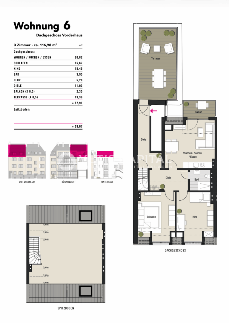 • Zwei Dachterrassen zum Wohlfühlen: Ein große Dachterrasse und ein zusätzlicher Balkon laden zu sonnigen Stunden im Freien ein.